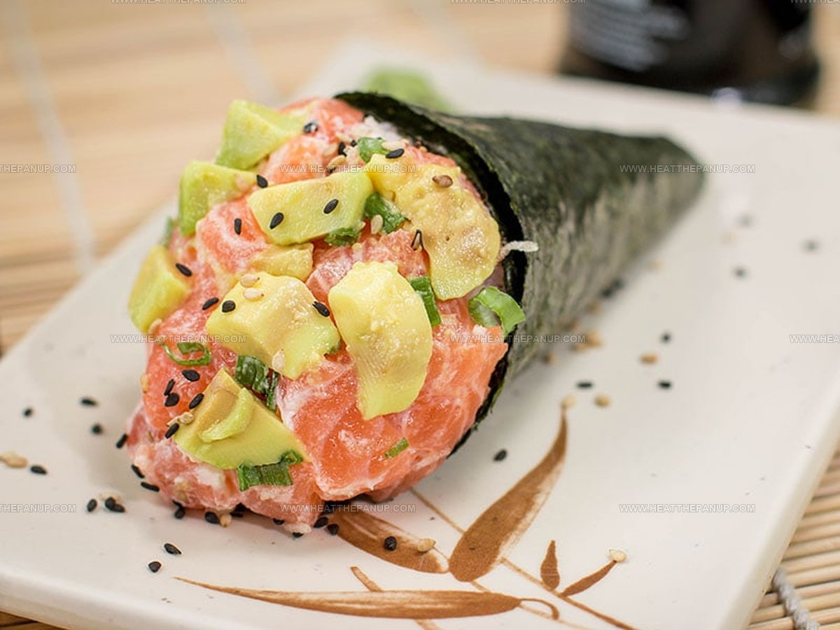 Unlike regular sushi rolls that can wait a while before eating, temaki should be enjoyed immediately after preparation because the rice quickly softens the seaweed, changing its texture. Since each temaki cone serves one person, they're never cut into smaller pieces like other sushi varieties.