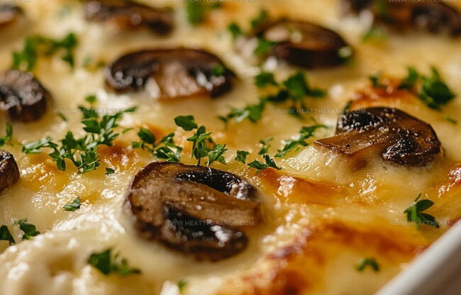 Creamy baked cheesy mushroom casserole delivers comfort with earthy mushroom depth and rich, melted cheese. Wild forest flavors blend seamlessly, promising warm satisfaction for hearty appetites seeking delicious home-style cooking.