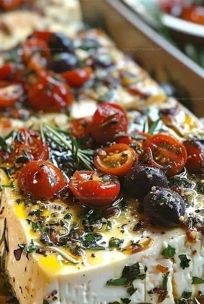 Mediterranean “Baked Feta with Olives & Sun-Dried Tomatoes” delivers rich, salty flavors straight from Greece’s culinary traditions. Melted cheese nestled among briny olives and tangy tomatoes creates an irresistible appetizer you’ll want to share with friends.