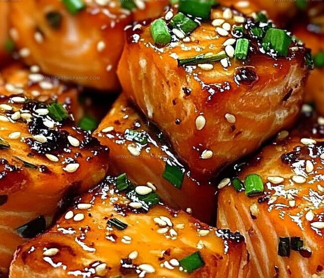 - Transfer the crispy, sauce-glazed salmon bites to a serving plate, creating an enticing presentation.
