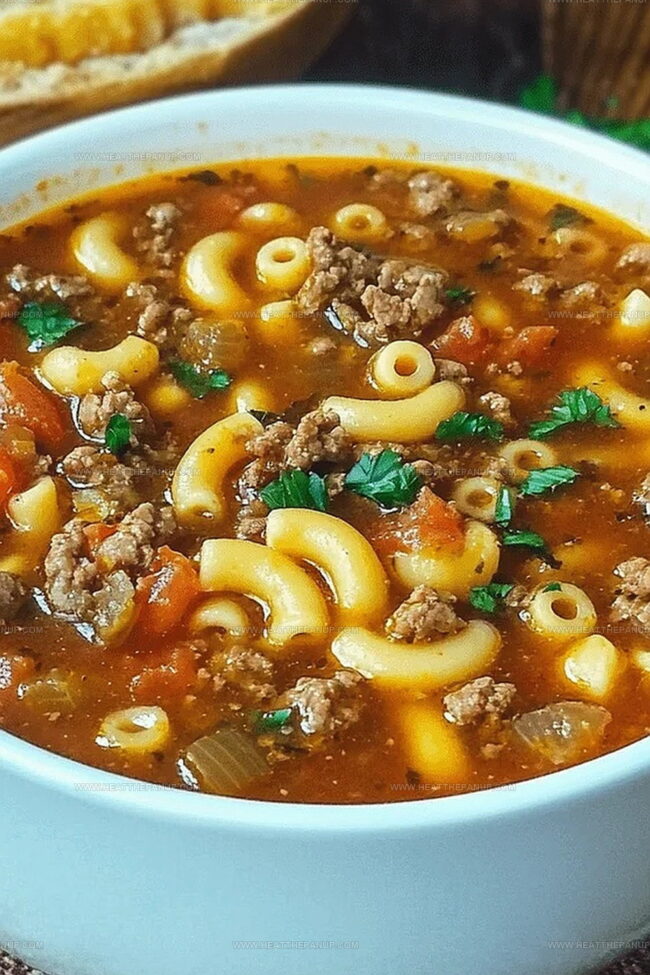 Comfort seekers adore this hearty beef and tomato macaroni soup that hugs your soul with every spoonful.