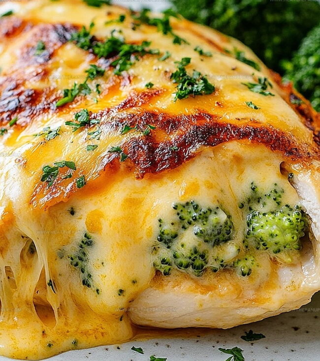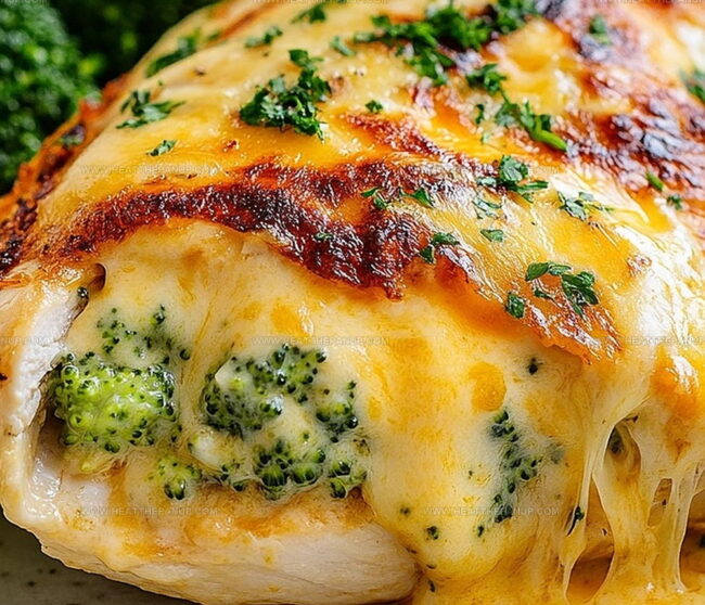 Melted cheese and green florets nestle inside juicy chicken, creating a meal that feels both indulgent and wholesome.