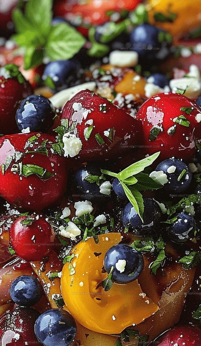 Summer’s Blueberry Peach Feta Salad brings Mediterranean charm to your plate, combining sweet fruits with tangy cheese. Fresh ingredients dance together, creating a refreshing experience you’ll crave again and again.