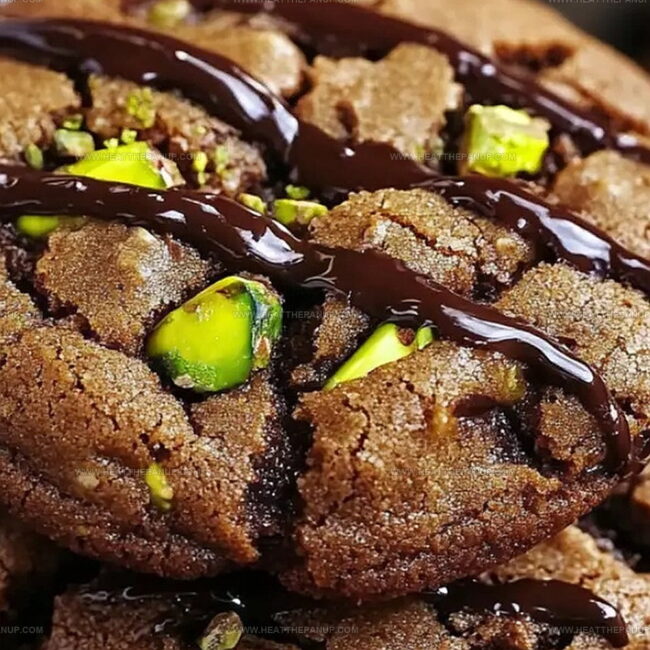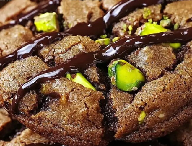 - Using a spoon or fork, artfully drizzle the melted chocolate across the cooled cookies. While the chocolate remains warm, sprinkle chopped pistachios over the surface for a final decorative and textural touch.