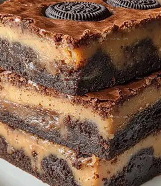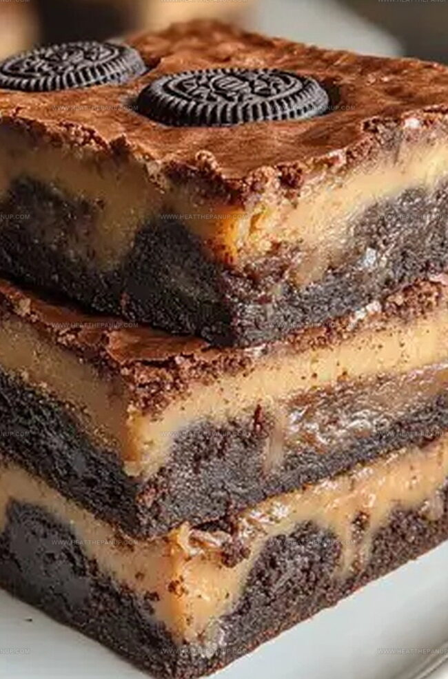 - Slice into precise squares, revealing the delectable layers of cookie, Oreo, and brownie.