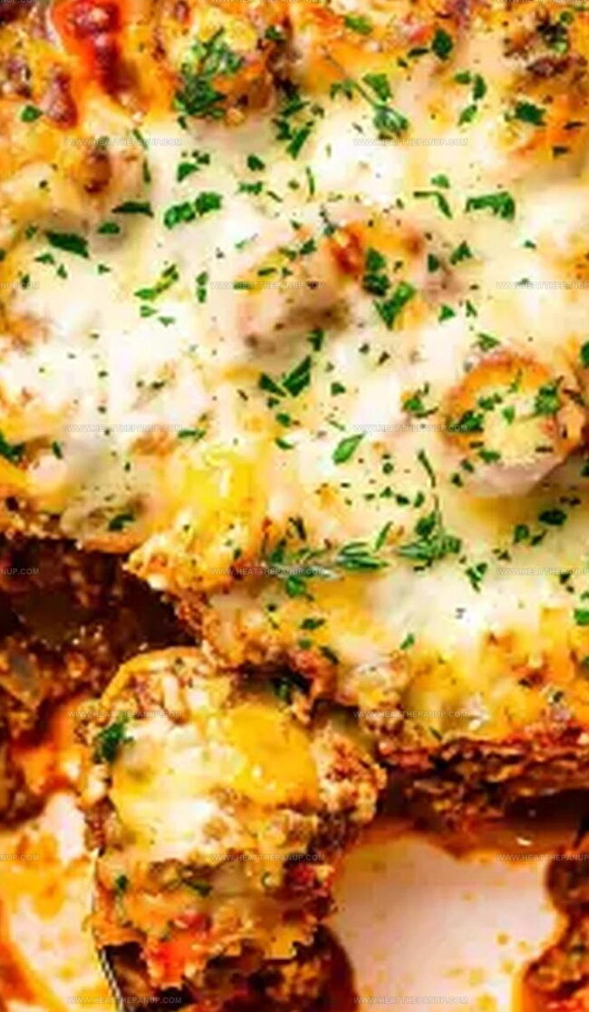 - Preheat the oven to 375°F (190°C), preparing a spacious baking dish for assembly. Create strategic layers alternating between seasoned meat mixture, freshly chopped cabbage, and vibrant marinara sauce. Continue layering until all ingredients are elegantly distributed.
