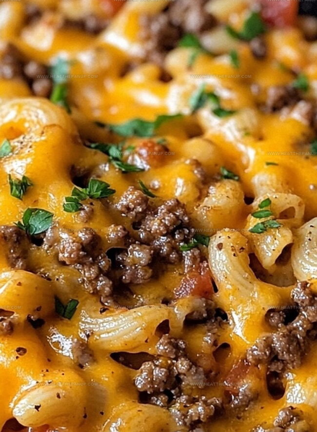 The hearty dish blends ground beef, melted cheese, and tender pasta into a delightful meal everyone will adore.