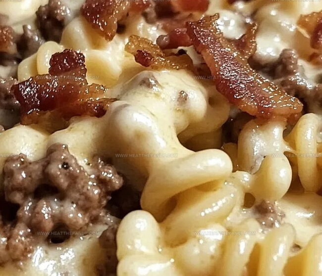 Cheeseburger pasta with turkey bacon delivers classic American comfort flavors in one skillet. Melted cheese, crispy bacon, and ground turkey mingle perfectly, creating a quick weeknight meal that satisfies serious hunger cravings.
