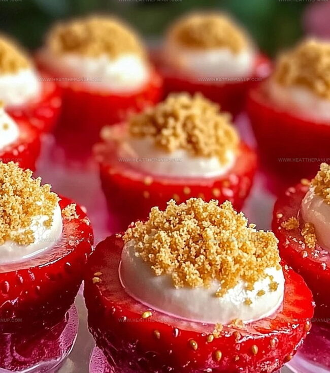 - Sprinkle finely crushed graham cracker crumbs over the filled strawberries, adding a delightful textural contrast to the creamy interior.
