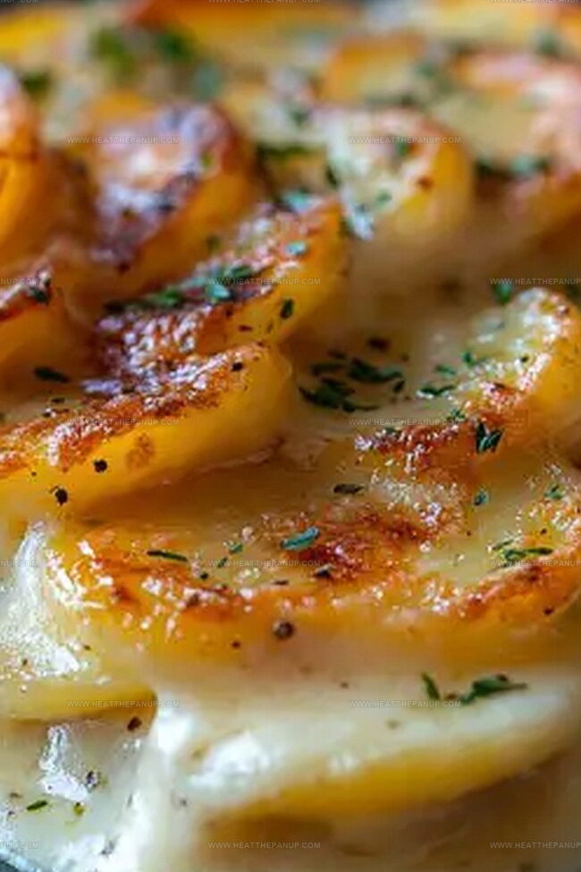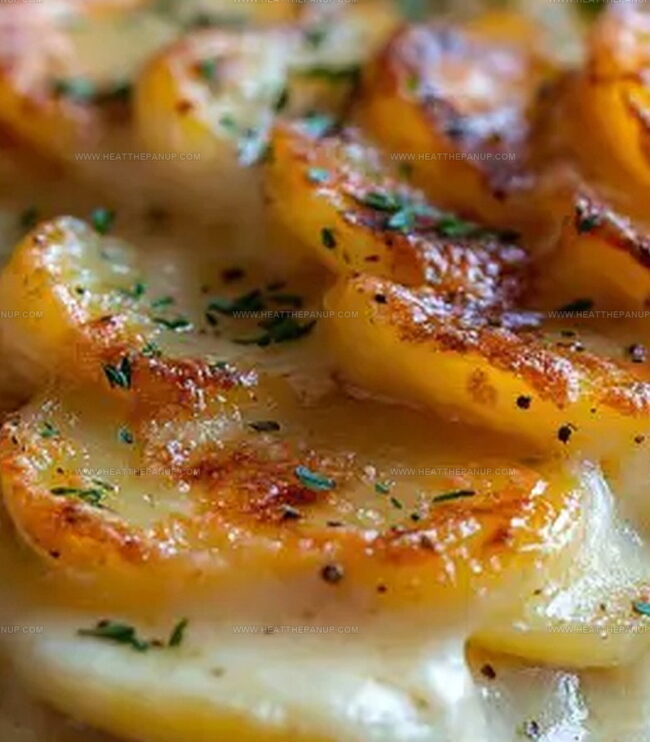Sliced potatoes nestle between rich, velvety cheese sauce that melts into every crevice.