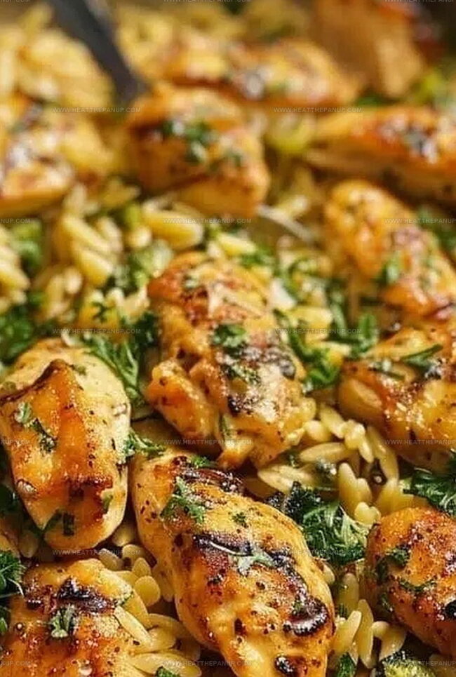 Savory chicken and orzo delights palates with Mediterranean charm, blending tender poultry and perfectly seasoned pasta. Hearty ingredients mingle in a comforting dish that promises satisfaction with each delectable bite.