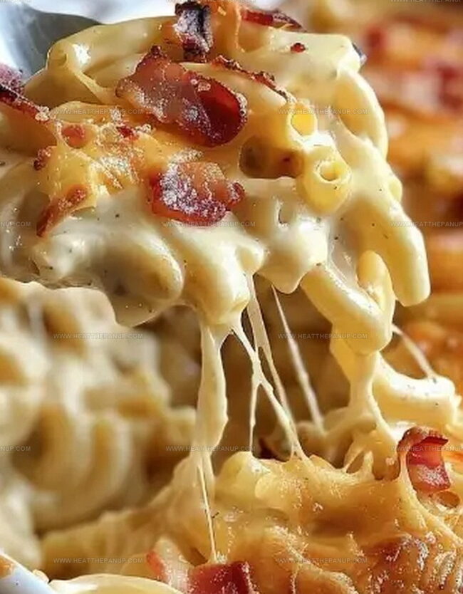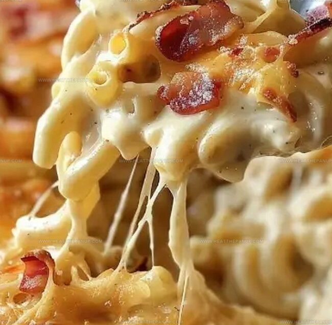 - Transfer the prepared sauce to a generous mixing bowl, combining it with perfectly cooked pasta, tender shredded chicken, crispy crumbled bacon, and half of the shredded cheese blend.