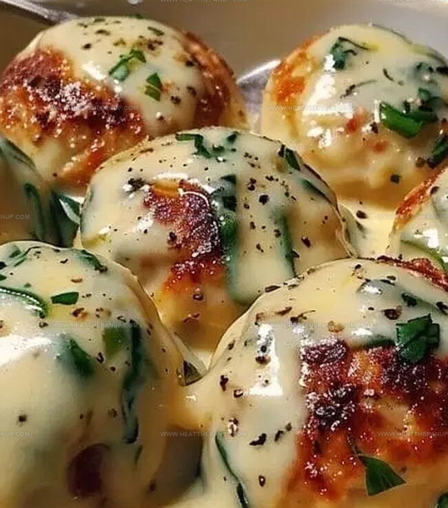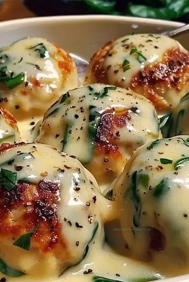 Dreamy Chicken Ricotta Meatballs With Spinach Alfredo Sauce Recipe