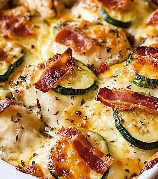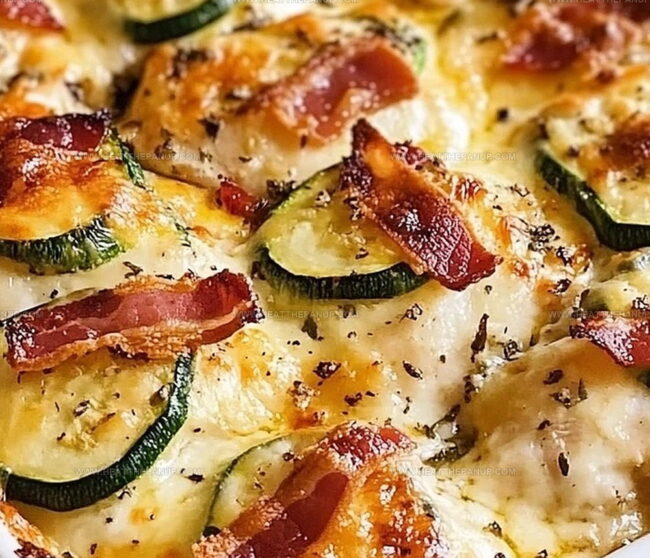 Savory chicken zucchini bake combines lean protein and garden-fresh vegetables in a comforting Mediterranean-style casserole. Crispy turkey bacon and melted cheese elevate this simple weeknight dinner, making it a delightful meal you’ll crave again and again.