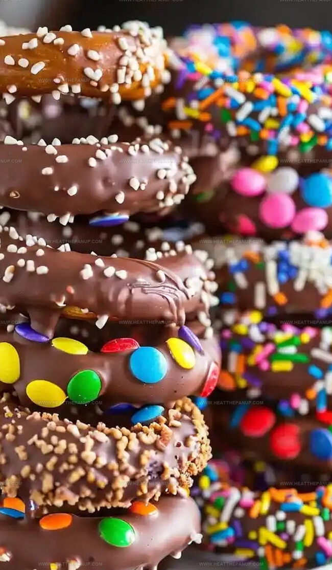 Chocolate Ingredients:Pretzels:Toppings:Chocolate Dipped Pretzel Rods Preparation