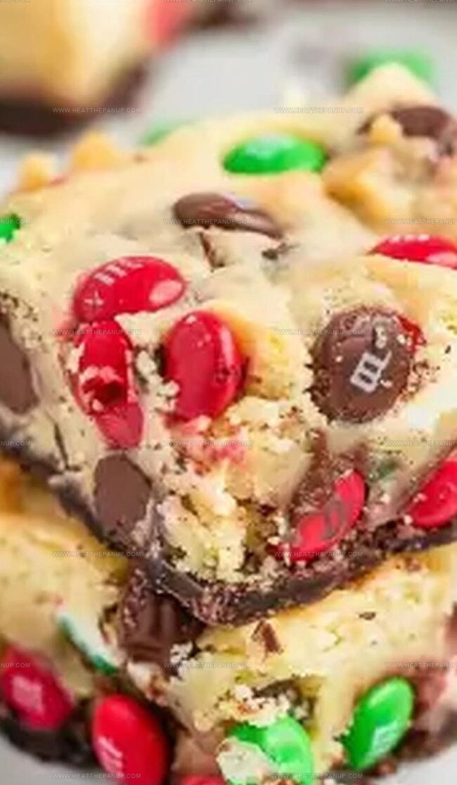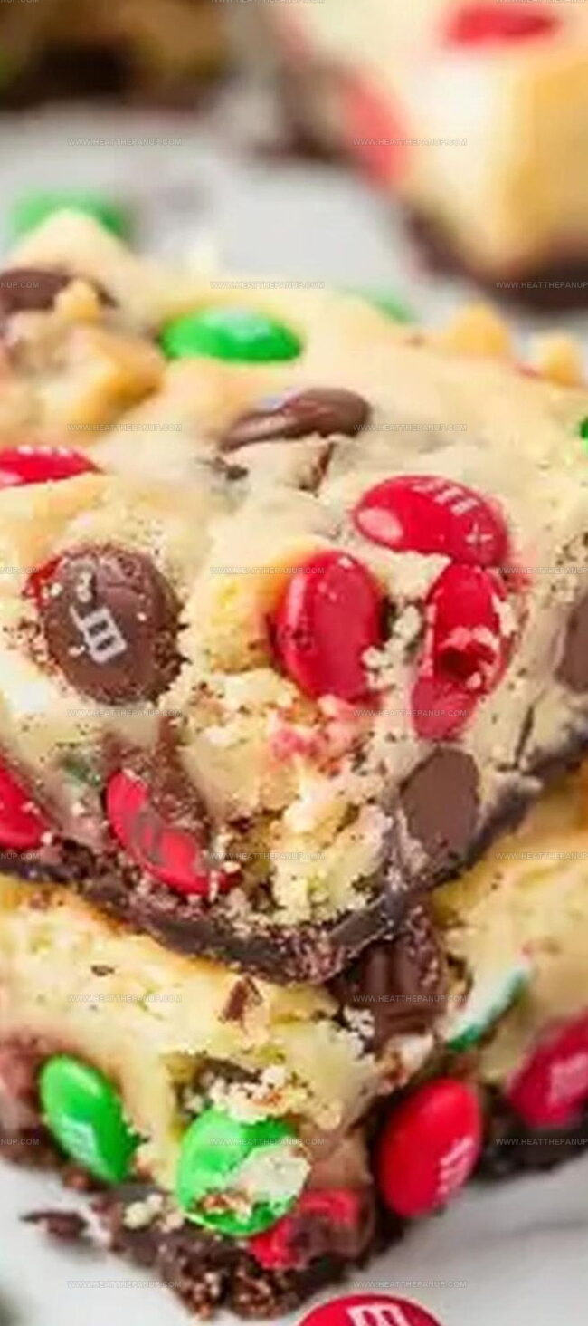 Jolly Christmas M&M Cookie Cheesecake Bars Recipe for Sweet Joy