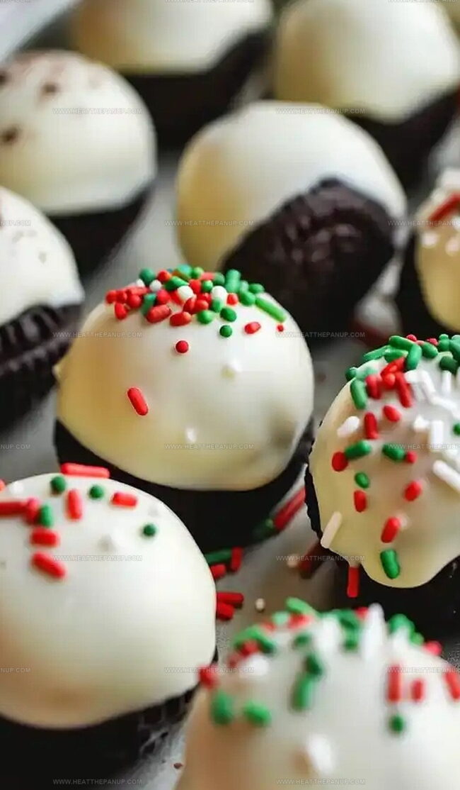 Sweet holiday magic happens when classic christmas oreo truffles collide with creamy chocolate and festive sprinkles.