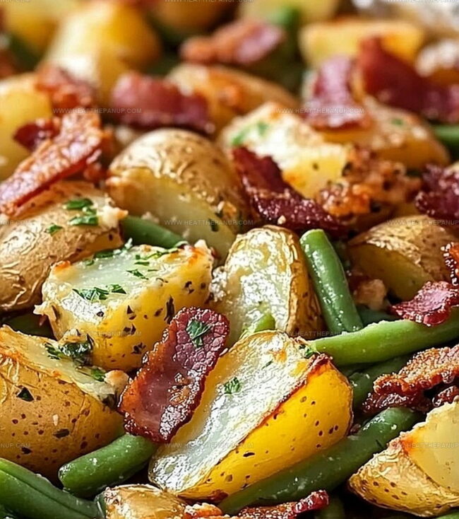Crisp green beans dance with tender potatoes in this hearty country ranch green beans n potatoes with turkey bacon classic.