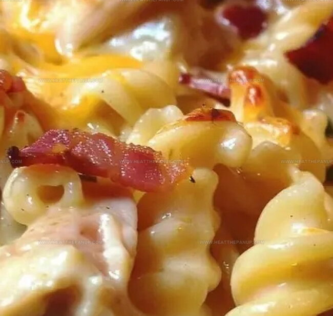 Sprinkle crumbled bacon over the pasta mixture.