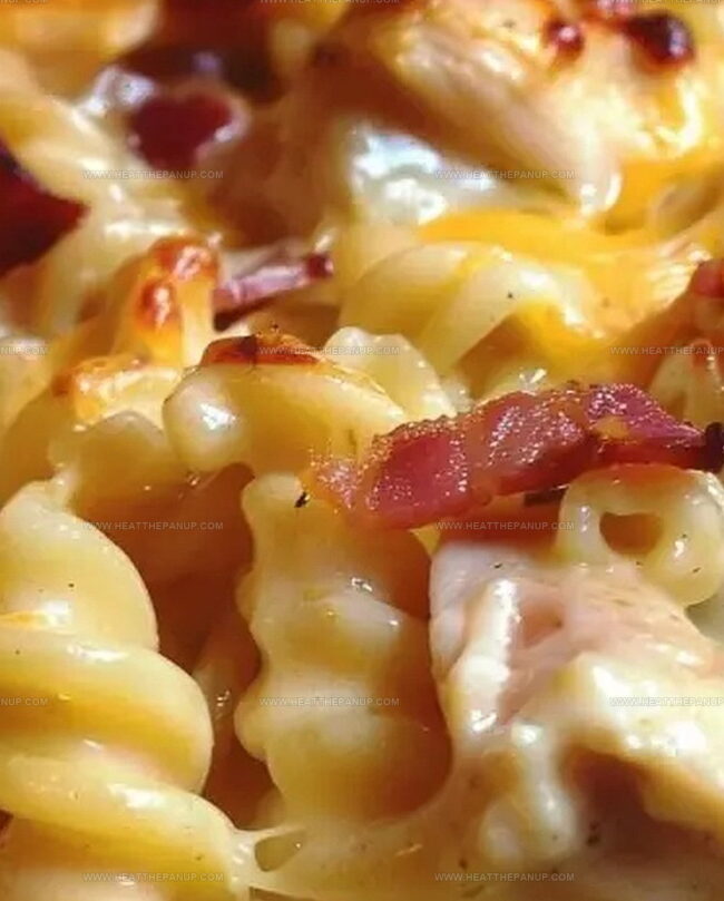 Cheese melts into golden perfection, while tender chicken nestles between perfectly cooked pasta strands.