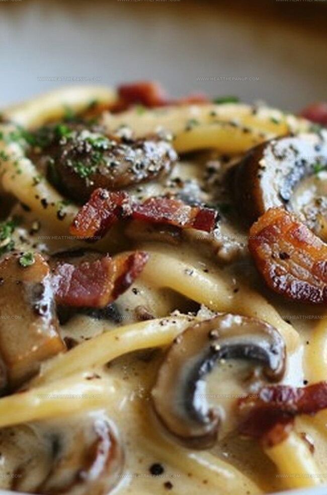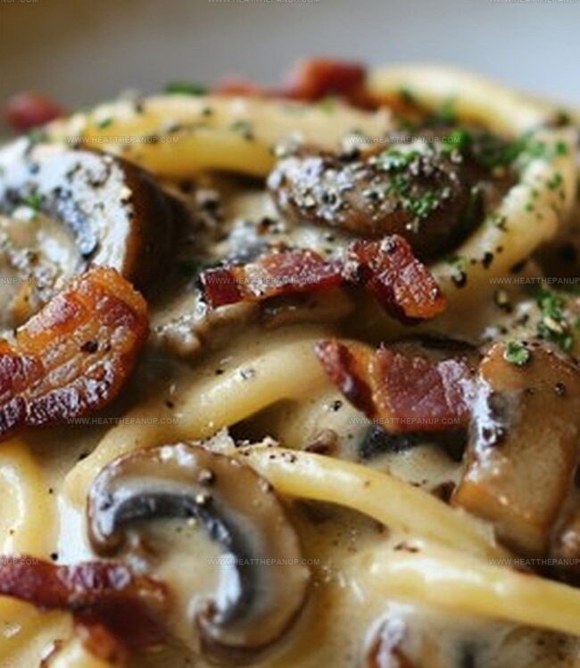 Savory creamy bacon and mushroom pasta delivers Italian-inspired comfort with smoky bacon and earthy mushrooms. Silky sauce and perfectly cooked noodles promise a delightful meal you’ll crave again and again.