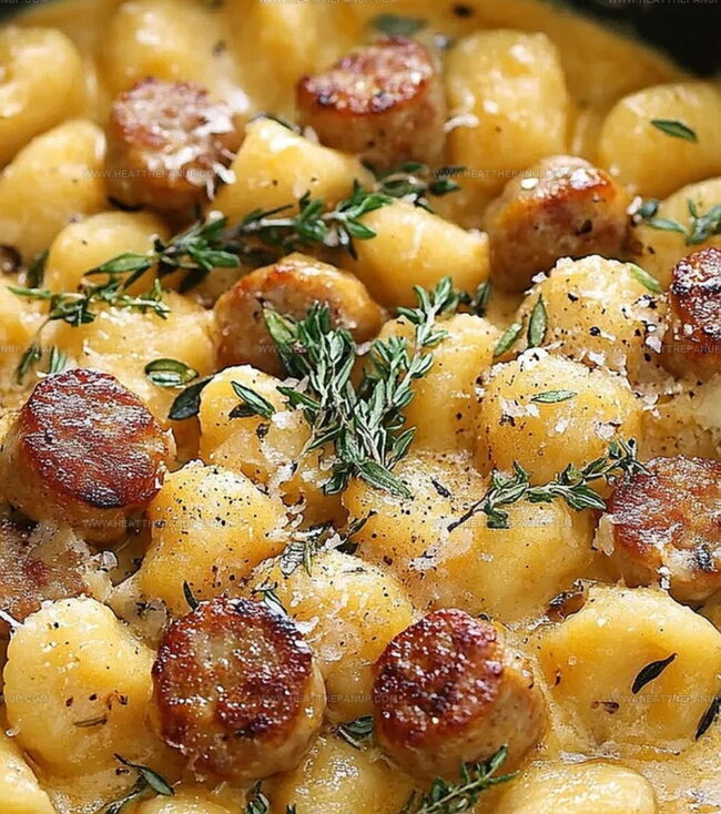 Fragrant thyme and sage weave through the creamy sauce, adding depth and rustic charm to this Italian-inspired dish.