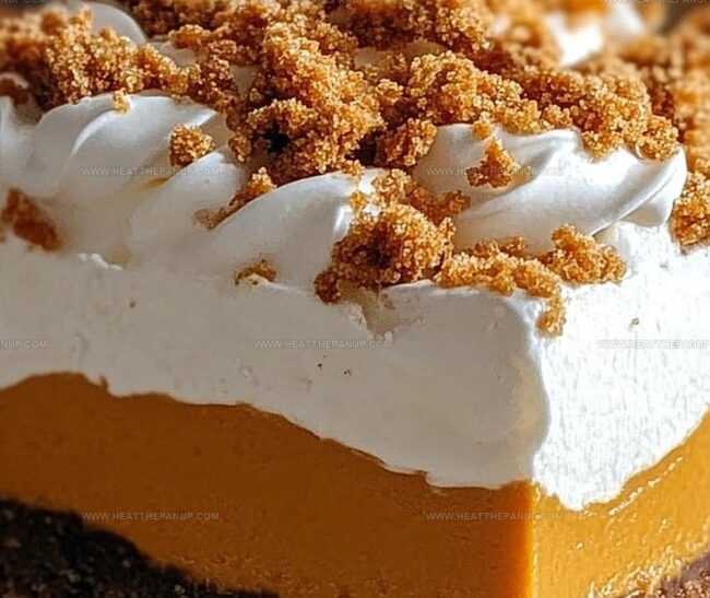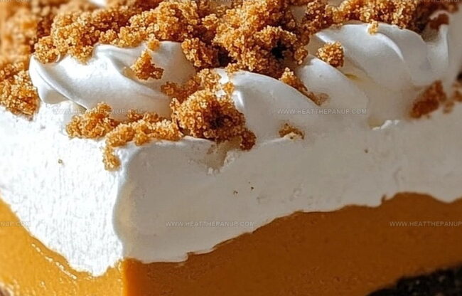 Dessert lovers swoon over this creamy layered pumpkin dessert with a ginger snap crust that delivers pure autumn magic.