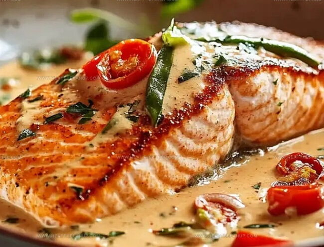 - Plate the salmon and generously ladle the vibrant, creamy sauce over each fillet, creating a visually stunning and flavor-packed dish.