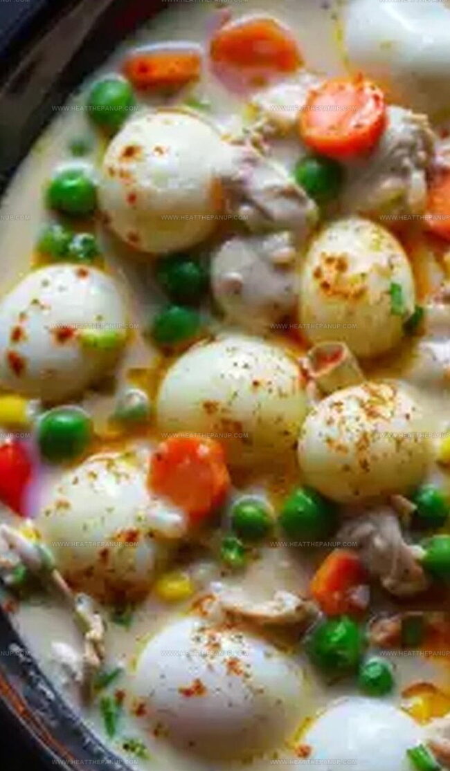 This recipe is protein-rich from chicken gizzards and eggs, and packed with vitamins from vegetables like carrots, corn, and peas. The creamy sauce adds calcium and makes it a balanced, nutritious meal.