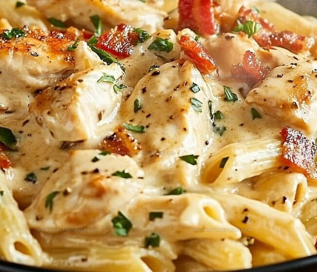 - Incorporate the pasta into the chicken mixture, coating each strand with the rich, creamy sauce.