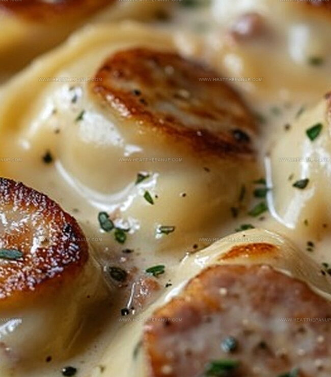 Layers of pillowy pierogies cuddle alongside savory kielbasa sausage, creating a meal that feels like a warm embrace.