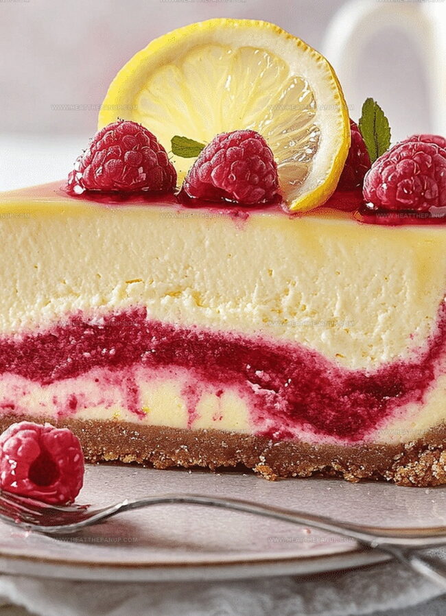 A silky lemon raspberry swirl cheesecake promises pure indulgence for dessert enthusiasts craving something spectacular.