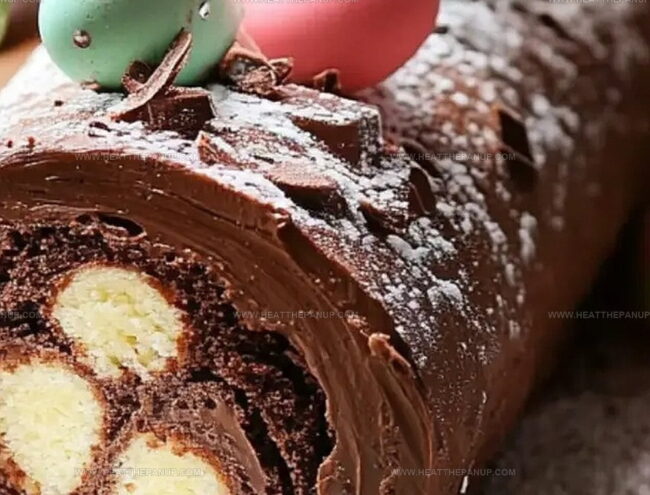 Festive Easter Chocolate Log Cake brings European baking charm to holiday dessert tables. Chocolate sponge rolls with creamy filling create sweet memories you’ll savor and share with loved ones.