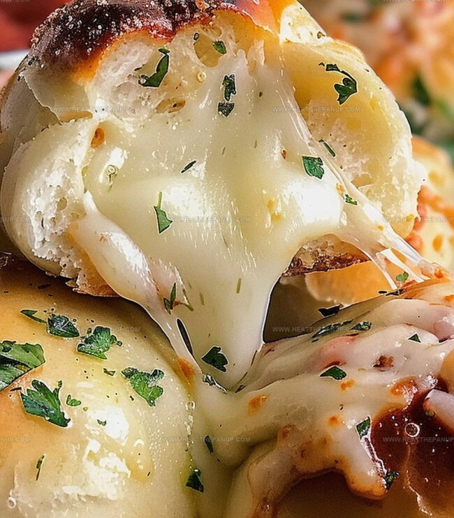 Warm, pillowy garlic cheese bombs explode with savory goodness, melting hearts and tantalizing taste buds. Golden-brown pastry pockets harbor molten cheese and aromatic garlic, promising ultimate comfort with each irresistible bite you’ll savor.