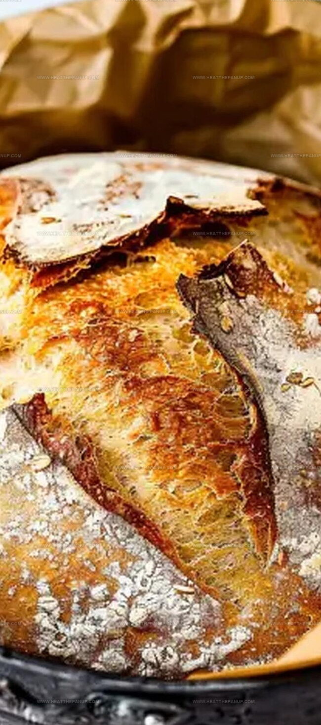 Preheat the oven to 450°F with a Dutch oven inside. Carefully transfer the dough (on the parchment paper) into the hot Dutch oven. Cover and bake for 30 minutes to create steam and develop a crispy crust. Remove the lid and bake for an additional 15-20 minutes until the bread turns a beautiful golden brown.