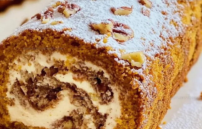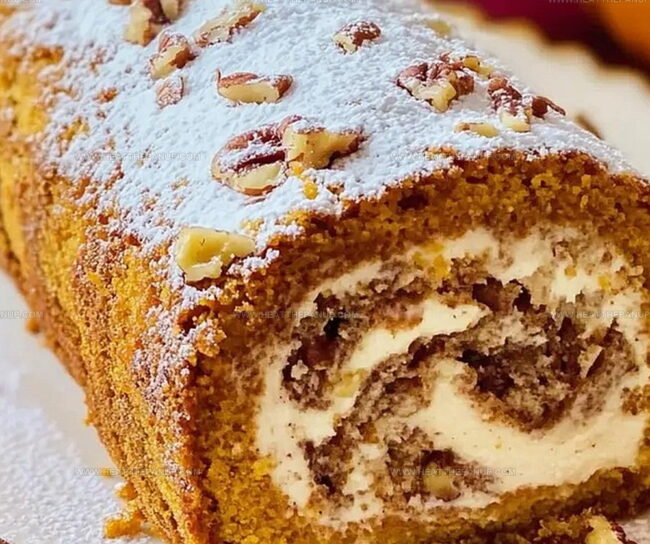 Silky pumpkin roll dances with creamy cream cheese filling, promising autumn’s warmest embrace. Sweet spices and delicate cake roll combine for a comforting dessert you’ll savor with each delightful bite.