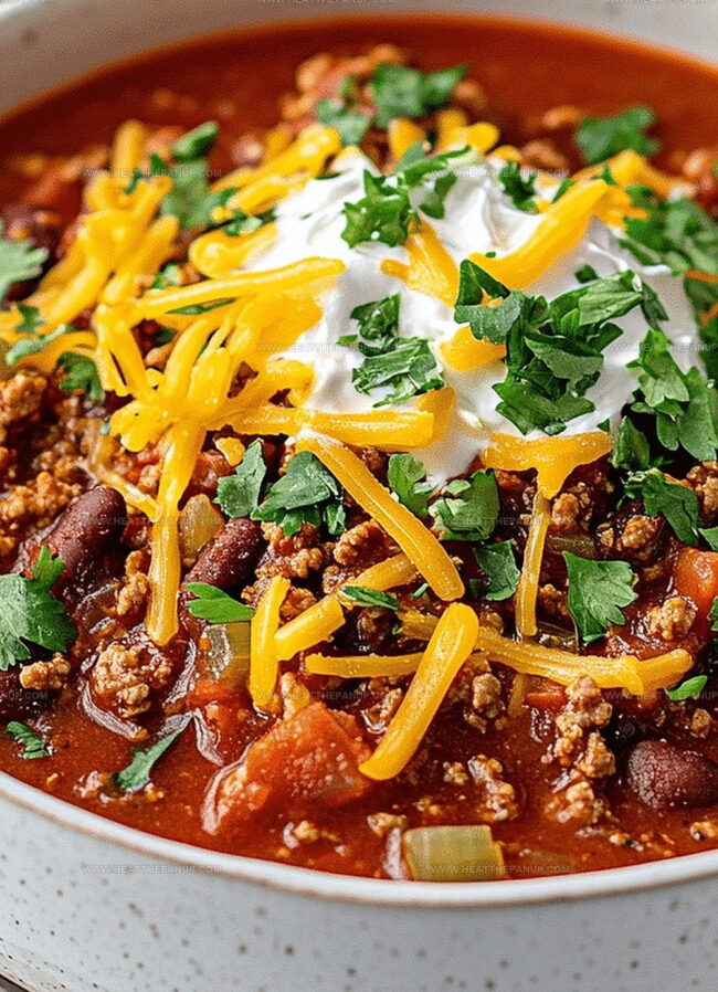 Spicy and hearty, this turkey chili recipe delivers comfort in a bowl with robust flavors and lean protein. Home chefs will savor the perfect blend of ground turkey, beans, and zesty seasonings that promise a satisfying meal packed with warmth and deliciousness.