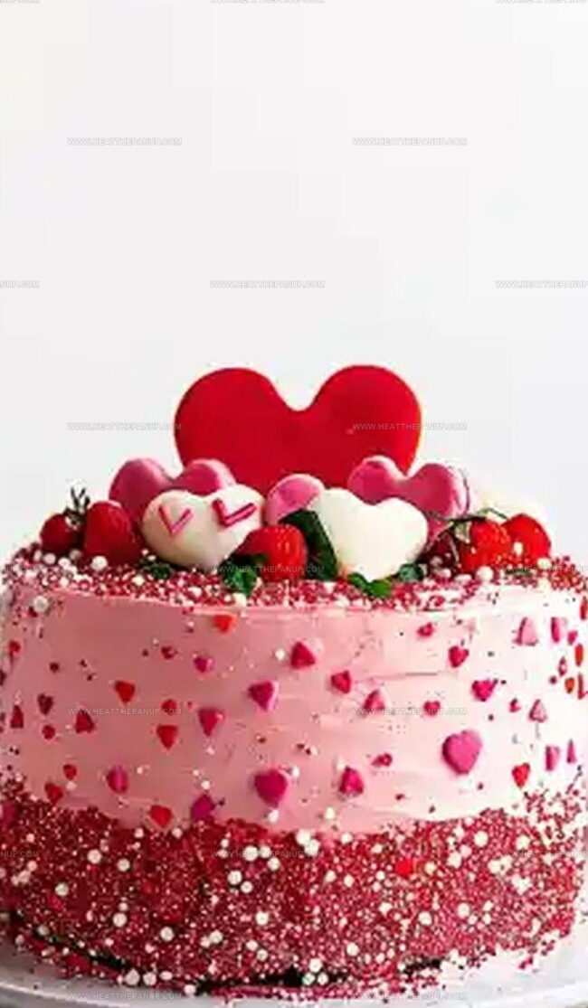 - Embellish the frosted cake with delicate sprinkles and fresh berries, adding a playful and romantic touch to the Valentine’s Day dessert.