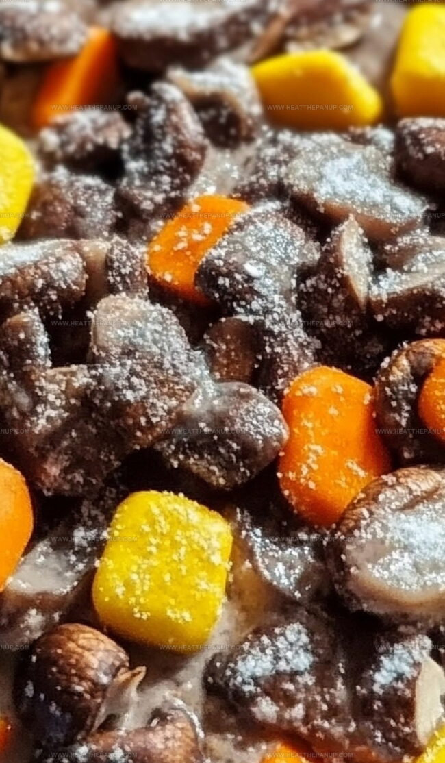 Spooky Halloween Buddy Mix brings festive cheer with its colorful blend of sweet and salty treats. Seasonal chocolate, pretzels, and candy corn create a delightful snack perfect for autumn gatherings and Halloween parties.
