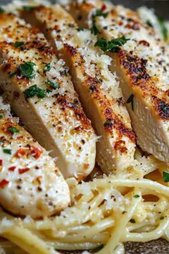 - Slice chicken and artfully arrange over the spaghetti. Garnish with extra parmesan and fresh minced parsley for a restaurant-quality presentation.