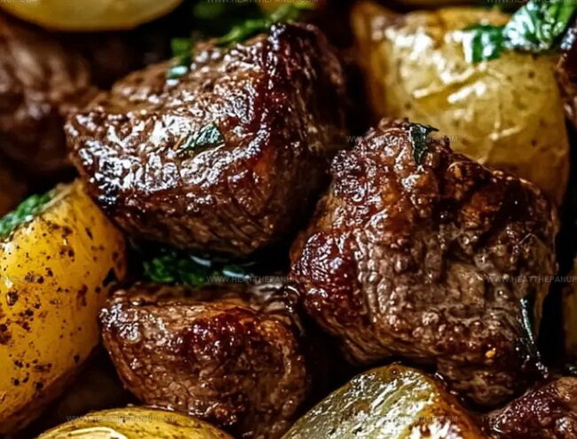 Sizzling garlic butter steak bites and potatoes bring robust flavors straight from home kitchens to dinner tables. Crispy potato edges and juicy steak pieces create a perfect comfort meal you can savor in minutes.