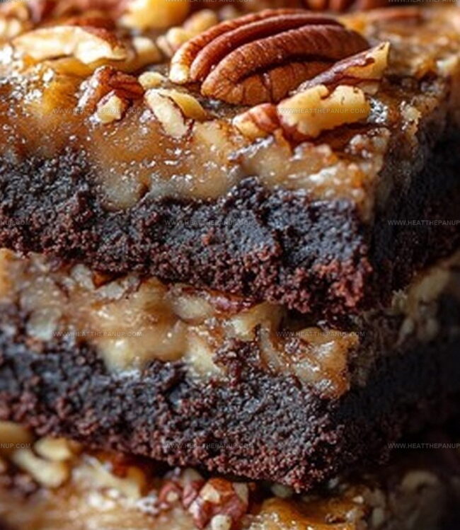 Sinful german chocolate brownies blend rich cocoa with classic german chocolate cake flavors, creating a luxurious dessert that melts in your mouth. Sweet coconut and pecan frosting elevates these brownies, promising pure chocolate bliss for chocolate enthusiasts seeking an indulgent treat.