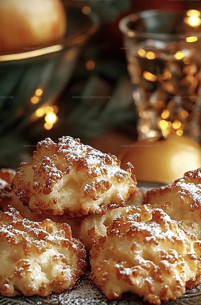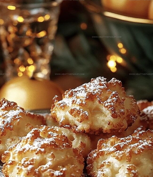 - Dust generously with powdered sugar, creating a delicate, sweet coating that enhances the fritters’ appearance and flavor.