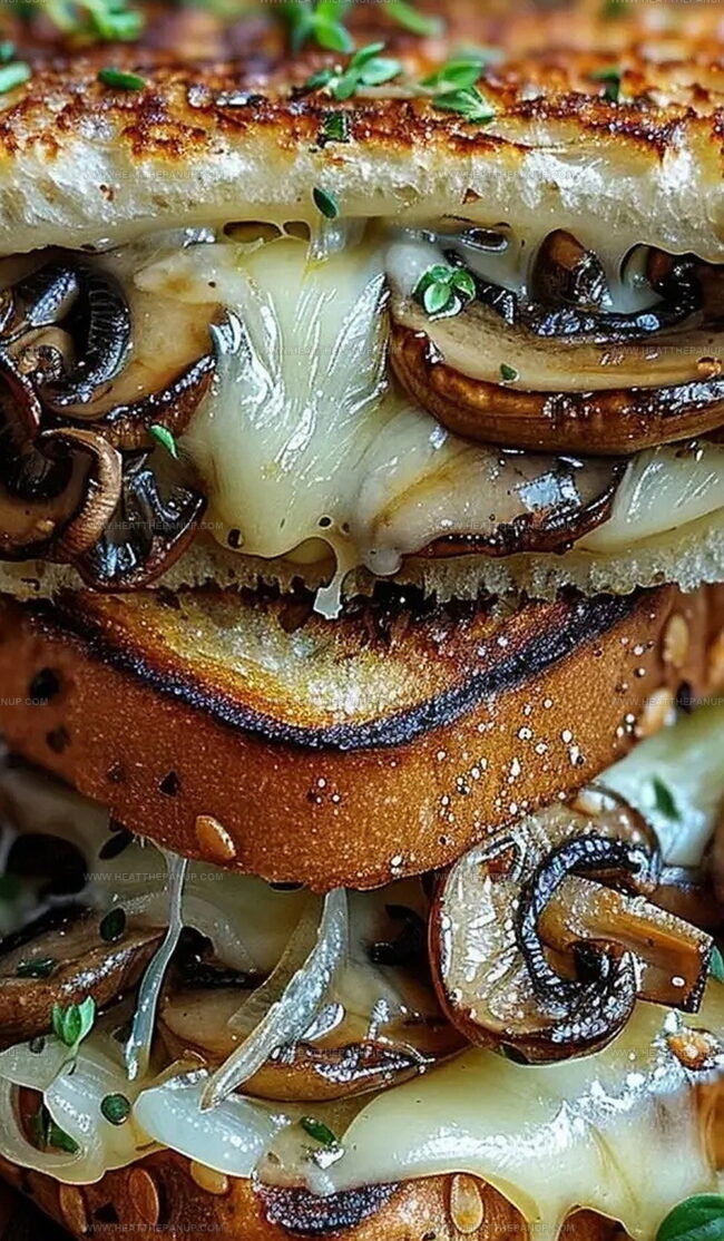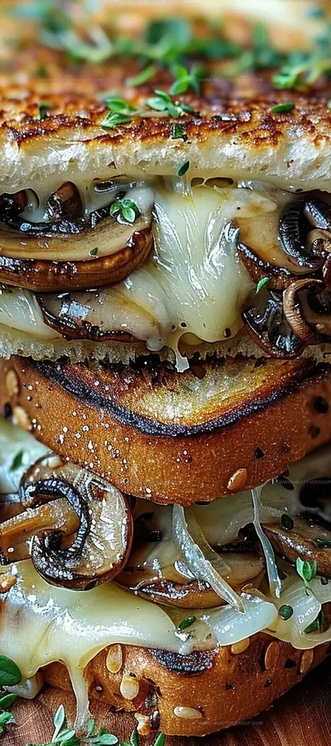 Gourmet grilled cheese with gouda showcases caramelized mushrooms and sweet roasted onions nestled between golden, crispy bread. Melted cheese and rich, earthy flavors create a comforting meal you’ll savor with each delicious bite.