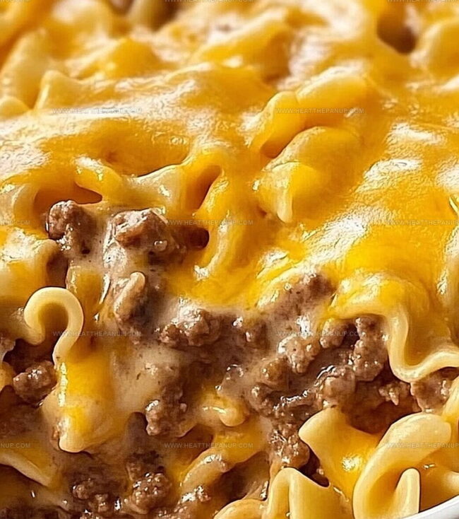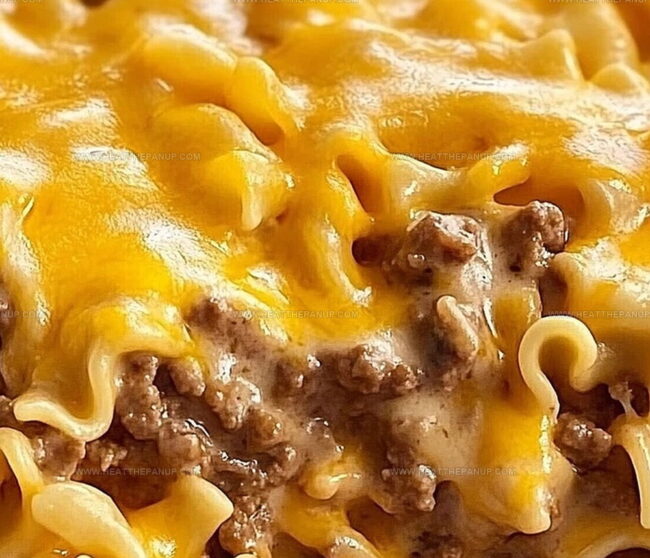 - Combine prepared noodles and seasoned beef in a spacious mixing container. Introduce tomato soup, golden mushroom soup, milk, dried minced onion, Worcestershire sauce, and grated Parmesan. Blend ingredients until harmoniously integrated.