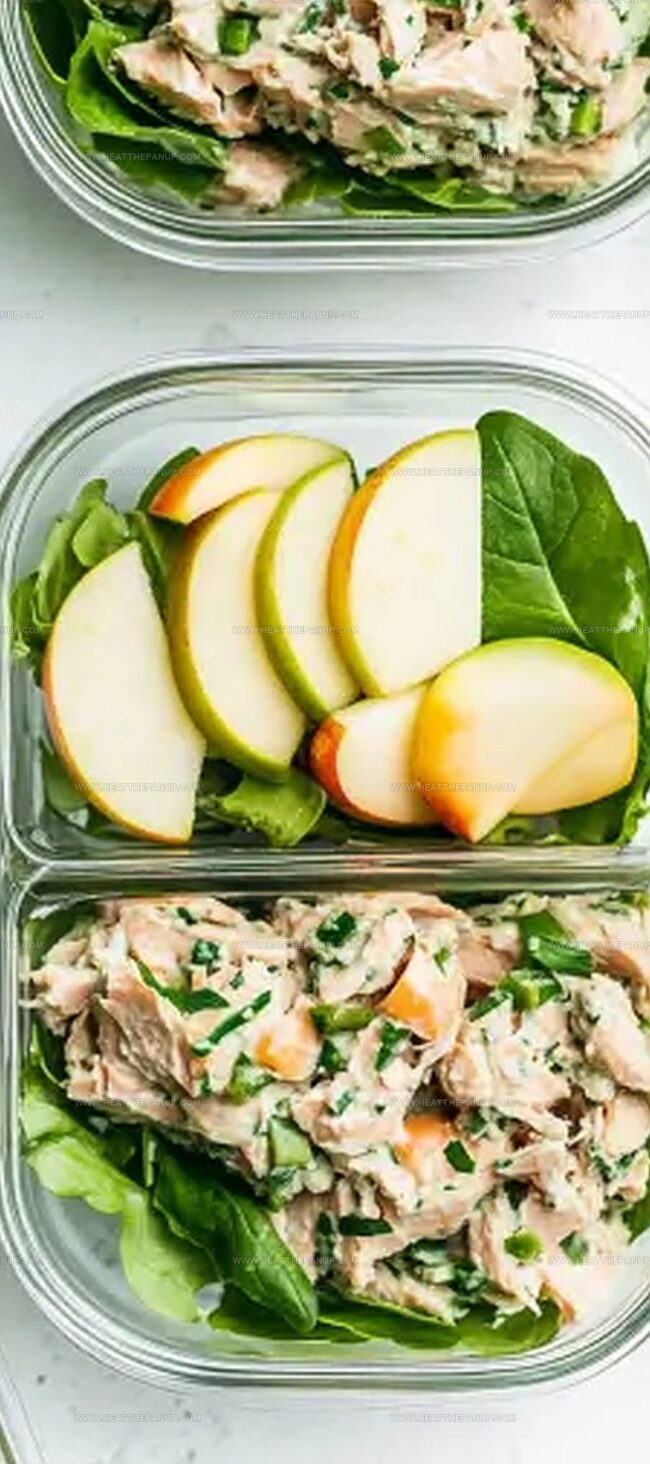 Distribute baby spinach evenly across 4 separate meal prep containers. Carefully spoon approximately 3/4 cup of tuna mixture on top of spinach, ensuring the mixture remains separate to maintain crispness.