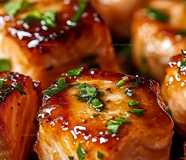Sprinkle fresh chopped parsley over the glazed salmon bites.