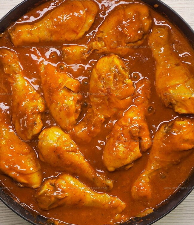 - Carefully place chicken pieces into the seasoned mixture, allowing each section to develop a golden-brown exterior through even browning.