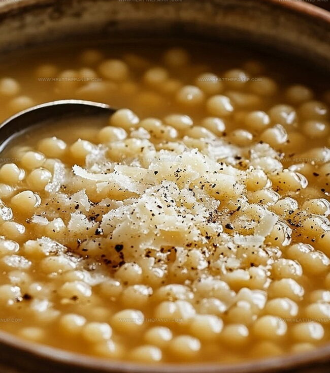 Delicate pasta pearls swim in a golden, nourishing broth that carries memories of grandmother’s kitchen.