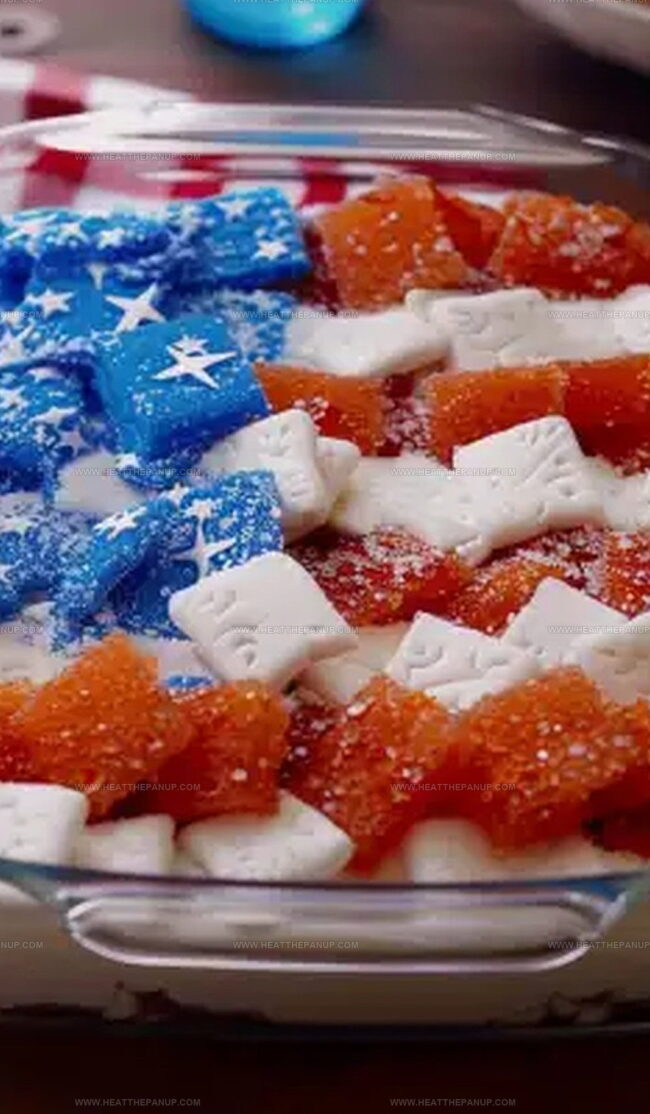 Patriotic colors blend seamlessly through gooey textures that capture classic american treat vibes.